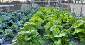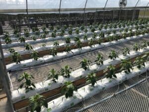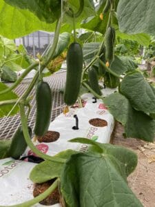 “其中一个温室使用鱼菜共生法种植黄瓜、传家宝西红柿、绿叶草本植物和蔬菜。这是一个创新系统,鱼为植物提供营养。我们使用 10,000 加仑的循环水系统,包括 (4) 个装有罗非鱼的 1,000 加仑水箱,并且基本上使用它们的排泄物为植物提供营养丰富的水。今年秋天,在 Aquasol International 的支持下,我们将使用该系统中的水,对其进行过滤,并使用它为我们在农场的椰壳纤维种植袋中种植的水培作物提供营养,”他说。